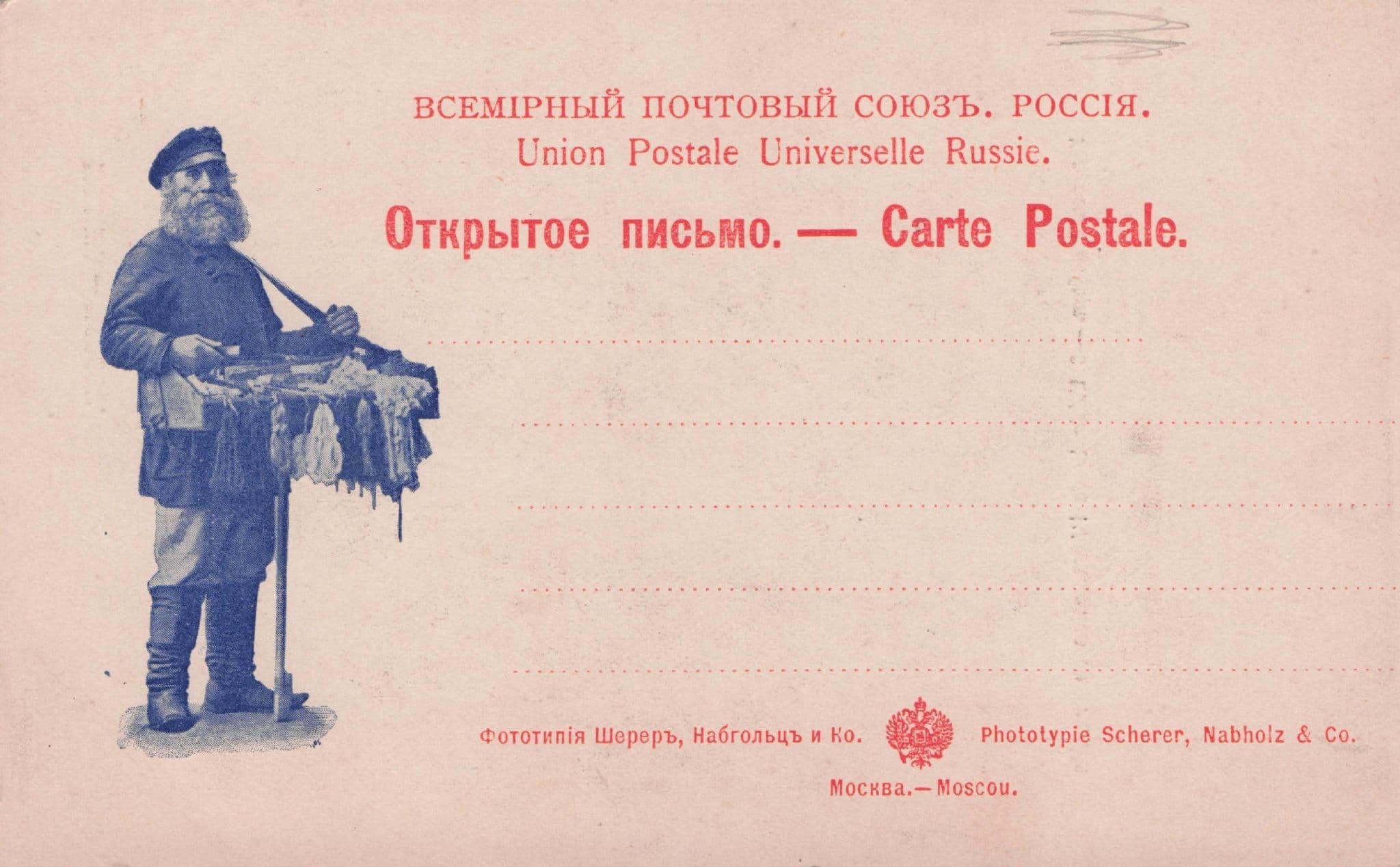 NP162 Antique postcard which on other side has amazing historic view from Moscow with message from sender and bar lightly aged (& very light surface corner impressions from former album storage) in excellent condition.