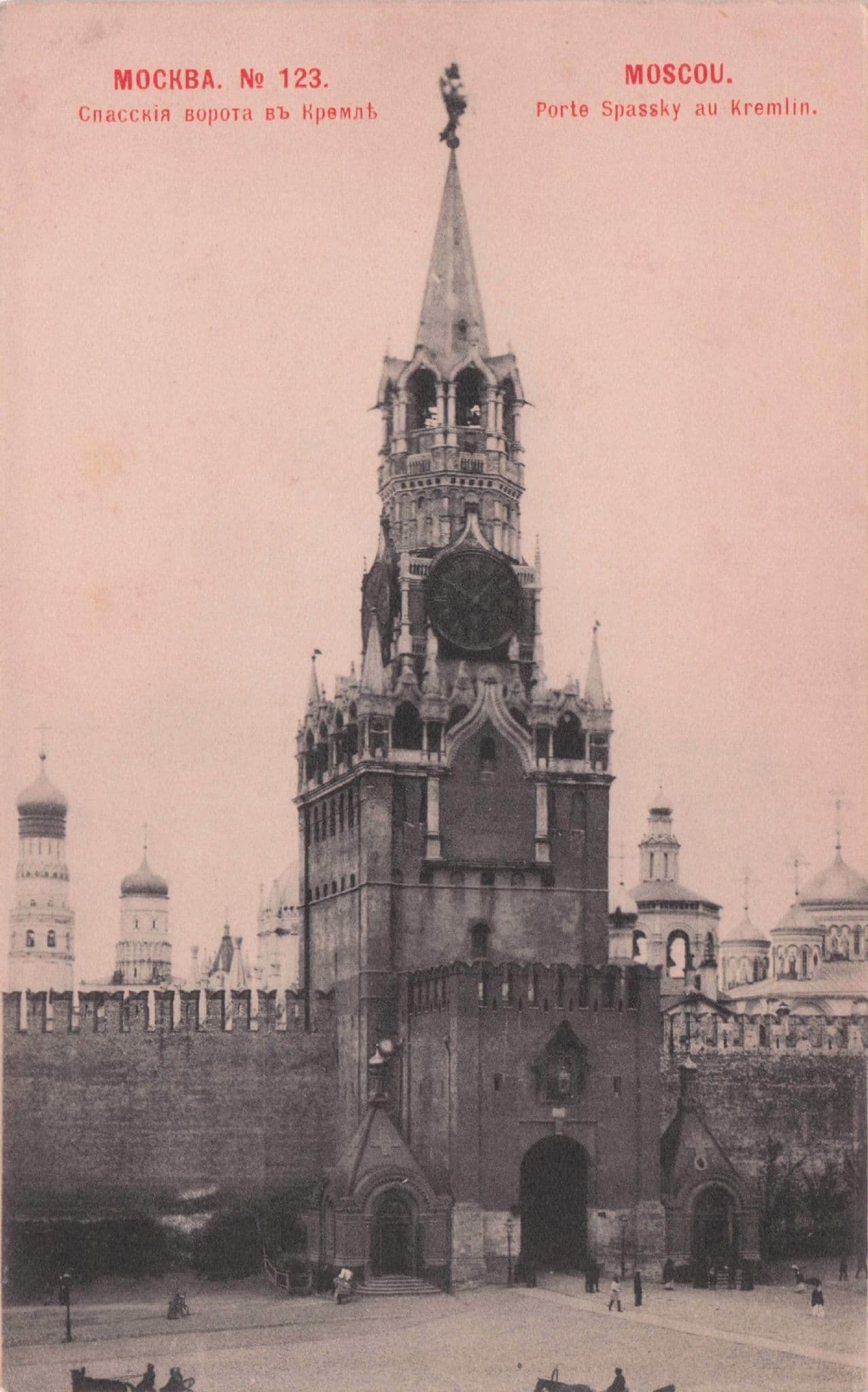 Moscow Porte Spassky Au Kremlin Soviet Russian Old Postcard