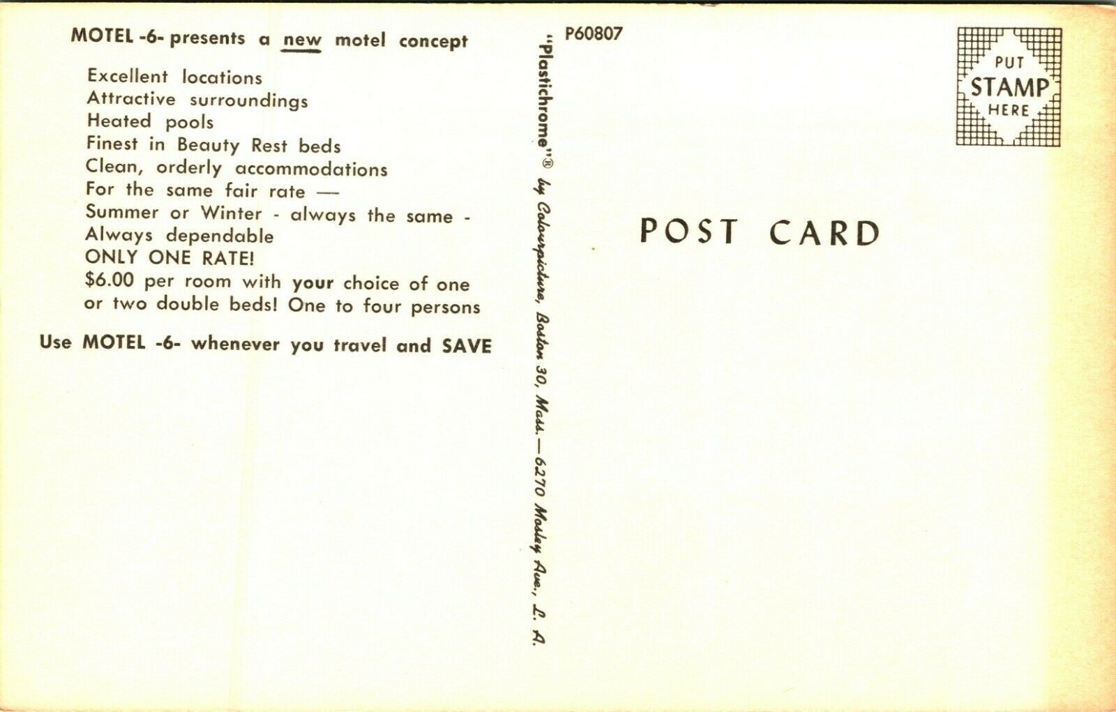 Motel 6 A New Concept Multivew Advertising Chrome Postcard B2