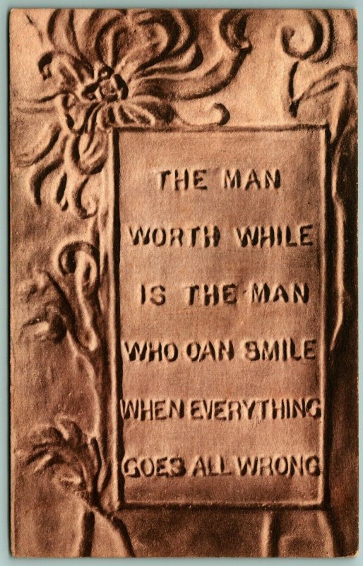 Motto Man Worth While is Man Who Can Smile When All Goes Wrong DB Postcard H5