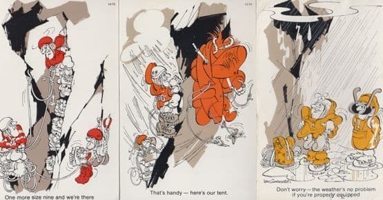 cat12 Great collection of comic postcards all from the same publisher and appear lat 70s early 1980s of mountain climbing humour all unused with sticky hinge marks just to reverse where removed from album otherwise great unused condition