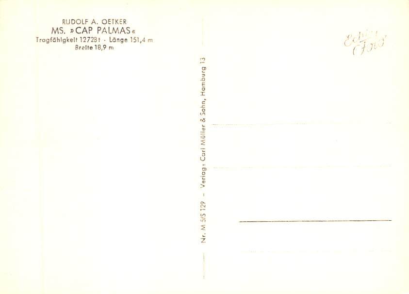 MS Cap Palmas CAP Ship Postcard