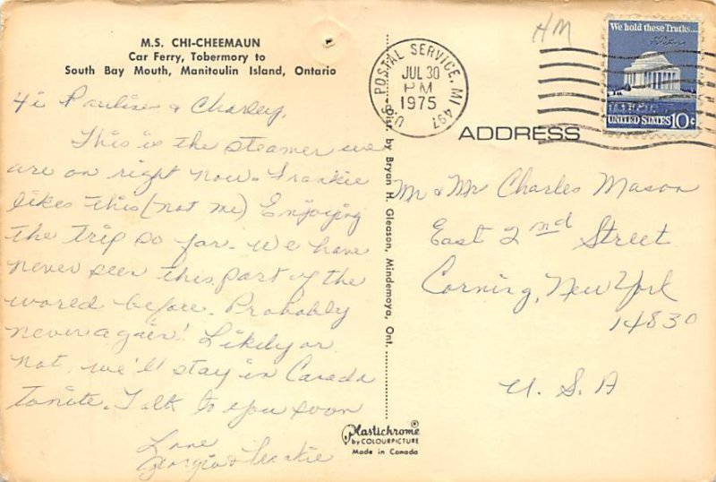 MS Chi Cheemaun Ship Postcard