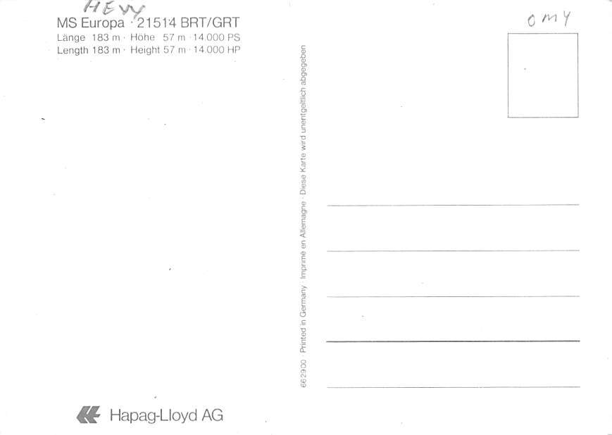 MS Europa Norddeutscher Lloyd Hapag Lloyd AG Ship Postcard ,