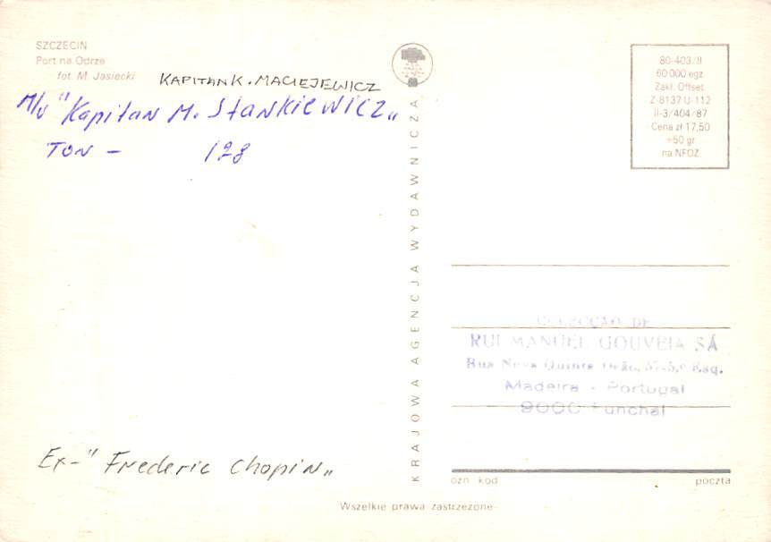 MS Kapitan M. Stankiewicz Misc Ship Line Ship Postcard ,