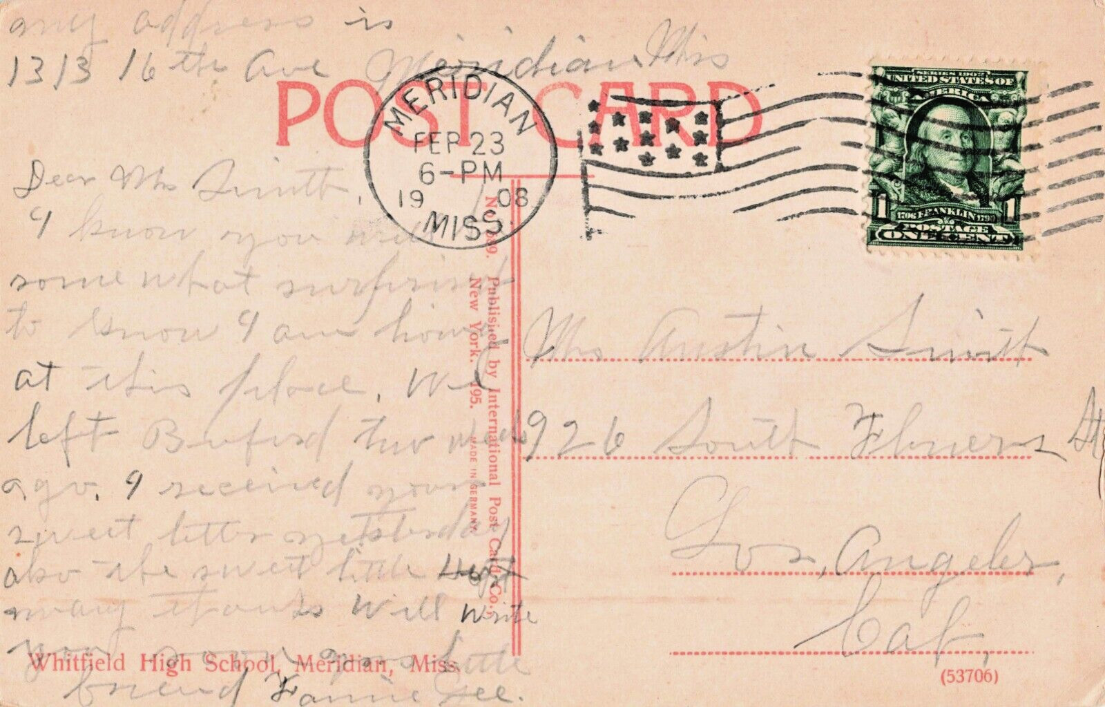 Postcard MS Meridian Mississippi-Whitfield High School-Antique c1908. We usually mail the postcards we sell in cardboard envelopes/mailers as pictured. See pictures for a depiction of condition. Use the zoom and please Ask questions. Thank you for viewing this vintage/antique postcard! Please take a look at our other postcards for sale. Save money by purchasing more - shipping will automatically combine for all items purchased at the same time. If you want to buy more than one item, simply wait until all items are in your cart to check out and pay. Please visit our other 299 Categories for items of potential interest to you. We have over 6,700 items. If you aren't absolutely satisfied, return your merchandise within 30 days for a prompt and courteous refund.Eras:Government Postal CardPioneer (1893-1898)Private Mailing Card (typically 1898-1901)Undivided Back (1901-1907)Divided Back (1907-1915)White Border (1915-1930)Linen (1930-1945)Chrome (1939-Present day)I take high megapixel photos of our cards and the zoom feature lets you see the full detail and condition of the front of the card. If you are interested in the back (and I didn't provide one) of the card (specific postmark, stamp, scene description, message, address, etc.) please let me know.Please pay via PayPal or Hip within 3 days. Thank you.Postally unused means not sent through the mail, but it still may be stamped, addressed or have other hand writing on it. Postally used, means sent through the mail and it has a postmark date/stamp on it.I pride myself on quickly getting your postcard packed and in the mail in less than 72 hours. But, please keep in mind that I have no control over how long the U.S.P.S. takes to actually get it to you. With all of their processing center and post office closures, mail is taking longer than ever to get to people. And for my friends in other countries, it could take up to 4 weeks to get to you from the time I put it in the mailbox.If this is a listing that I have several of the same card available, generally I take a picture of the "worst" looking card, but send the nicer ones until the very last card available is the one pictured. Therefore there might be slight differences in the card you receive from the one pictured for MULTIPLE QUANTITY LISTINGS ONLY. All other listings with only 1 card, you get the postcard pictured.For buy-it-now postcards over $20: shipping method is first-class, shipped in a cardboard mailer and hard plastic top loader.For buy-it-now postcards under $20 and all auctions: shipping method is Hip standard envelope (delivered by the post office). Postcard(s) will be shipped in a cardboard mailer/ envelope. If you'd like your postcard to ship with more protection, please contact me before paying to upgrade to first-class shipping.More information about Hip standard envelope: they are not scanned into the system like regular packages would be. The tracking can be unreliable. Your item may say it is delivered when it arrives at your local post office. Please be patient, and don't hesitate to reach out if your postcard has not made it to you safely.This item is being sold with no reserve, we only have this one. Don't let this opportunity slip by. While it is still available. Buy it Now!