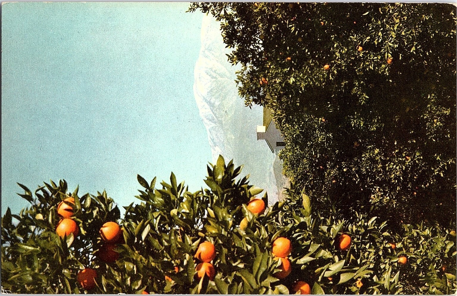 Mt. Baldy California Orange Trees & Snow-Capped Mountain Postcard