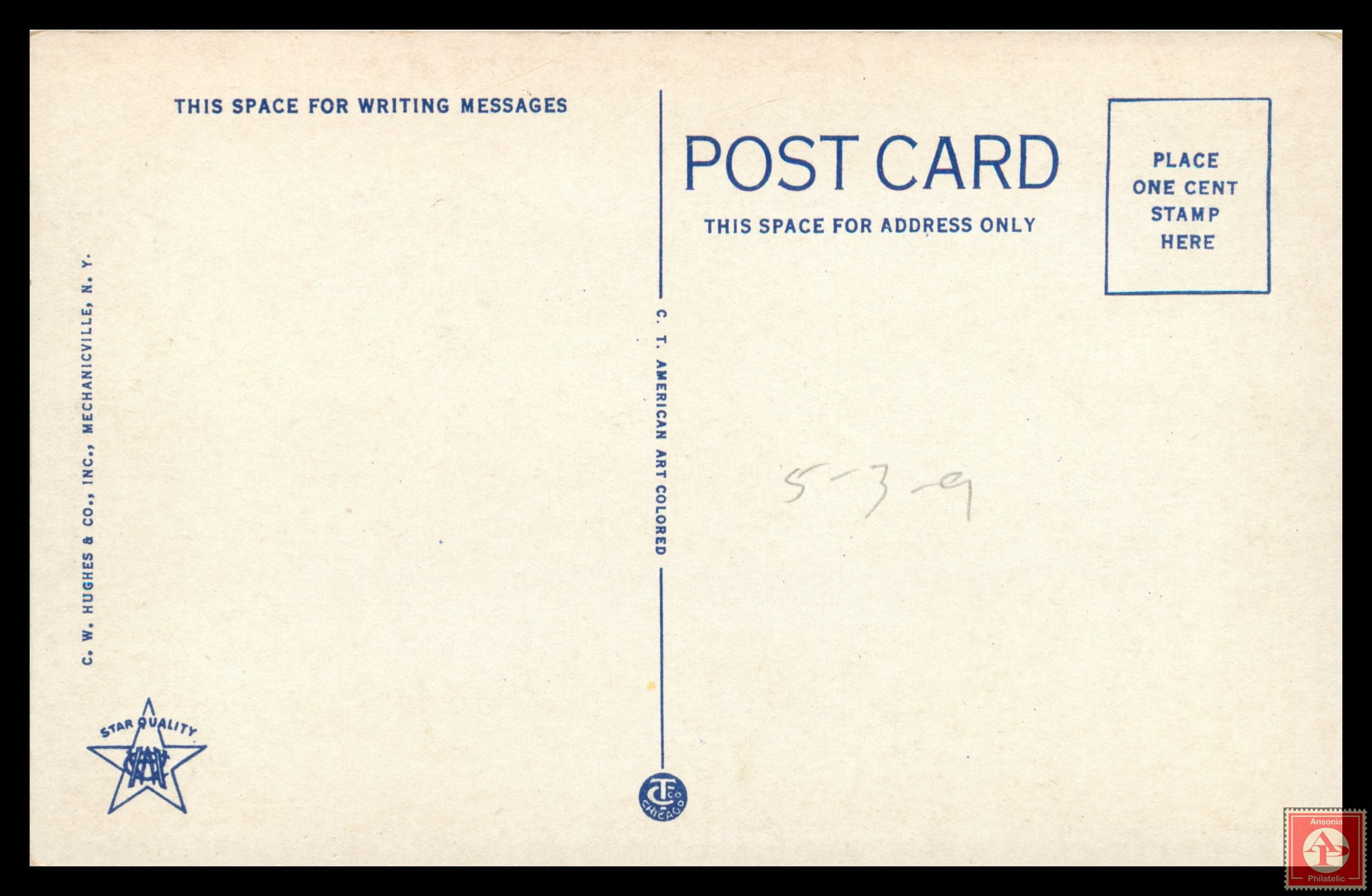 Some scans of postcards result in colored streaks which are a result of the error in scanning and not a fault of the postcard.