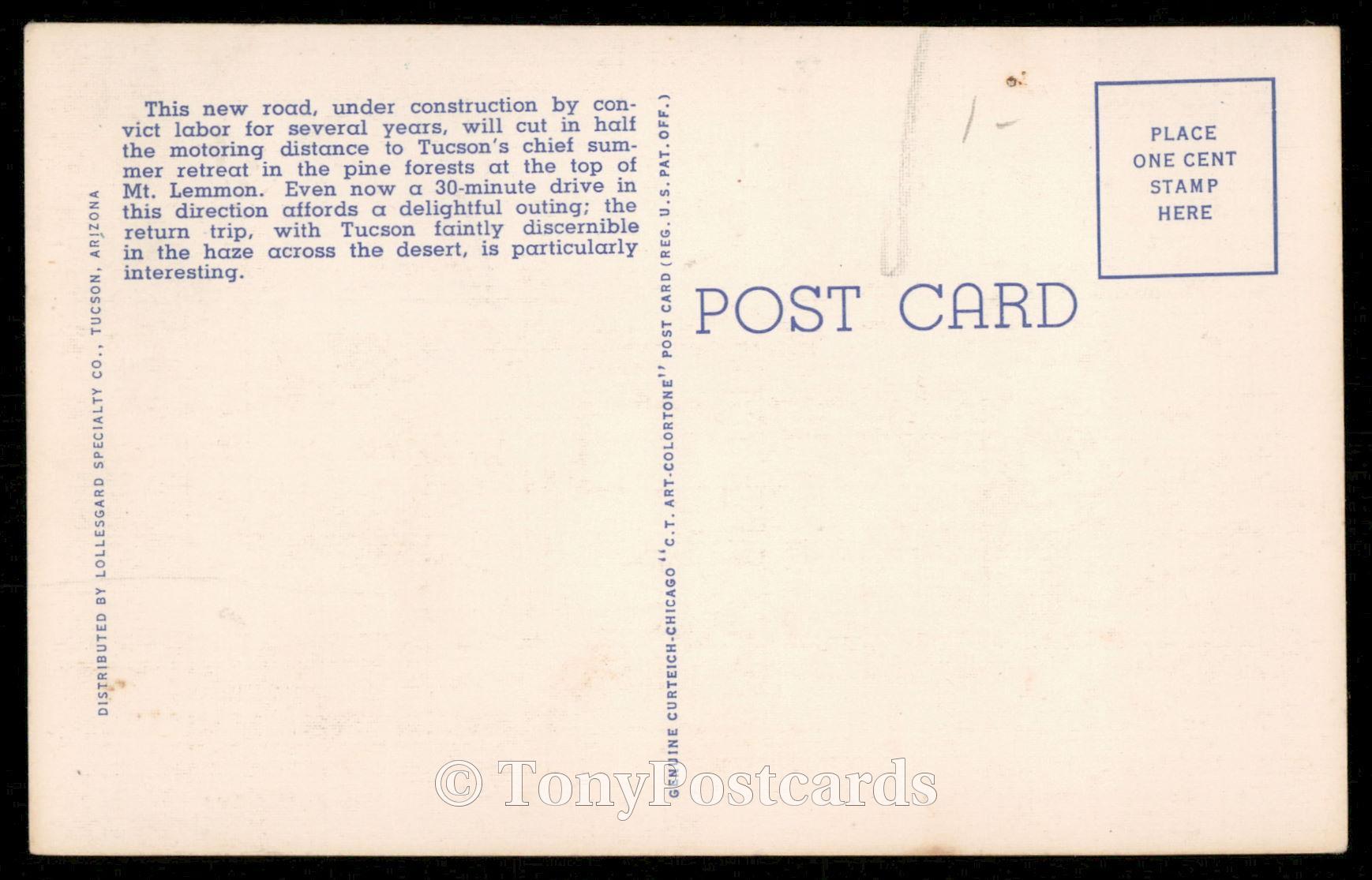 Title: MT. LEMMON ROAD, NEAR TUCSON, ARIZONA Condition: See scans