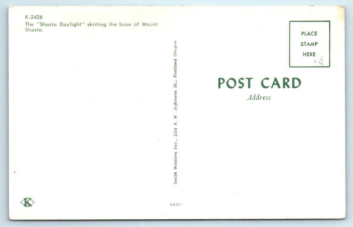 MT SHASTA, CA ~ Train "SHASTA DAYLIGHT" Streamliner Railroad c1950s Postcard