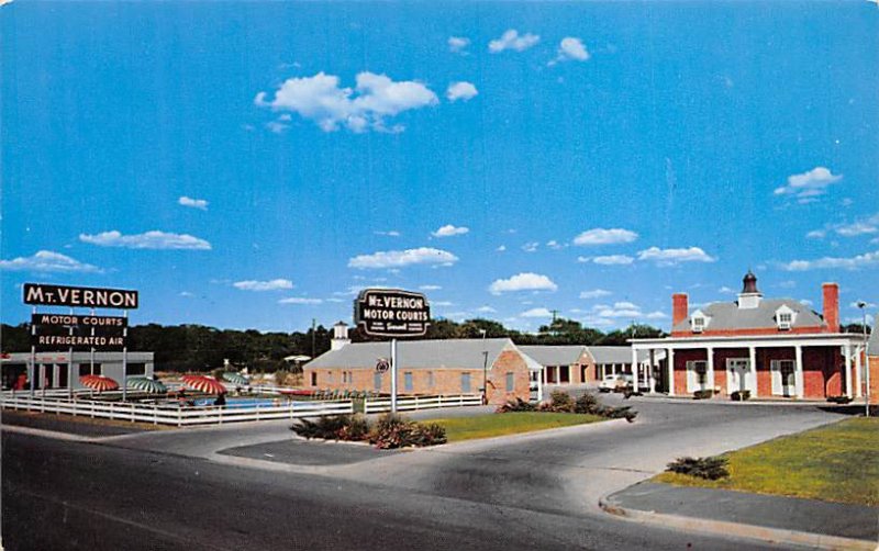 Mt. Vernon Motor Courts Postal Date: View Images Grade: 1 Size: Regular Size Postcard - approximately 3 1/2 inch x 5 1/2 inch (9 CM x 14 CM) Grading Scale: Grade 1 = Perfect corners Grade 2 = Very Minimal cor ... Read More