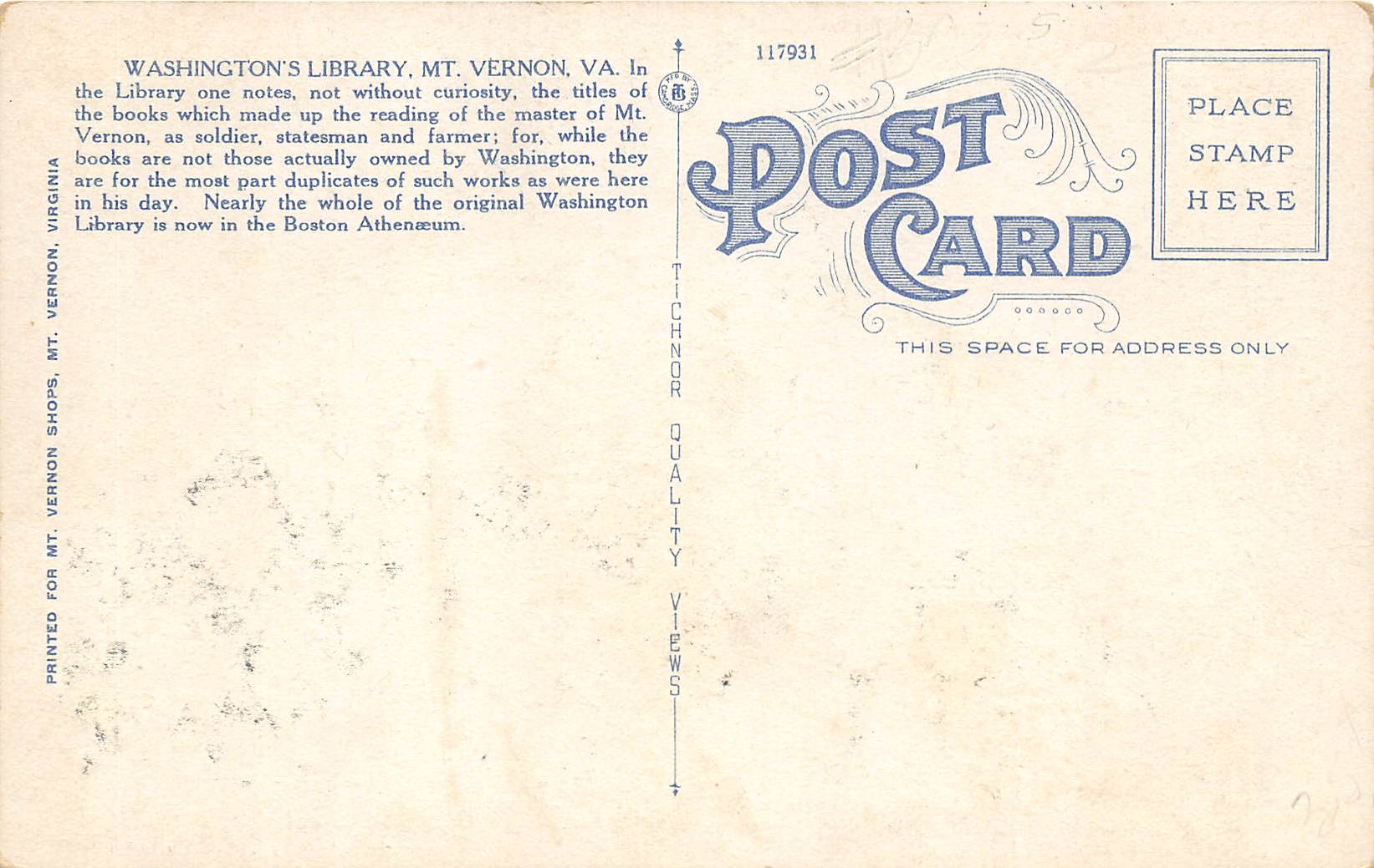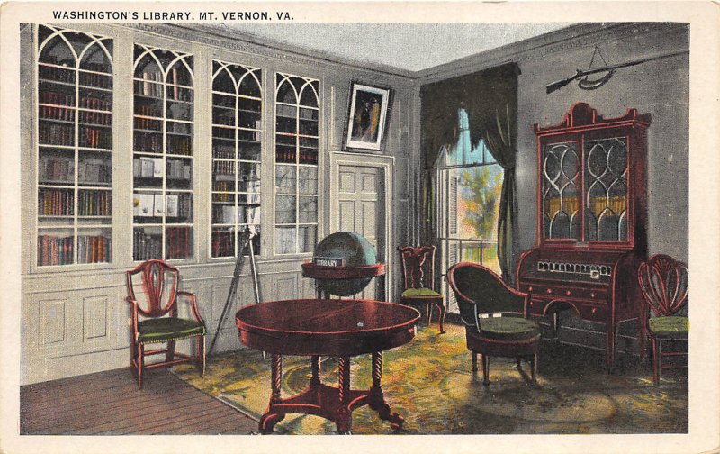 Mt. Vernon Virginia 1930s Postcard George Washington's Library Globe