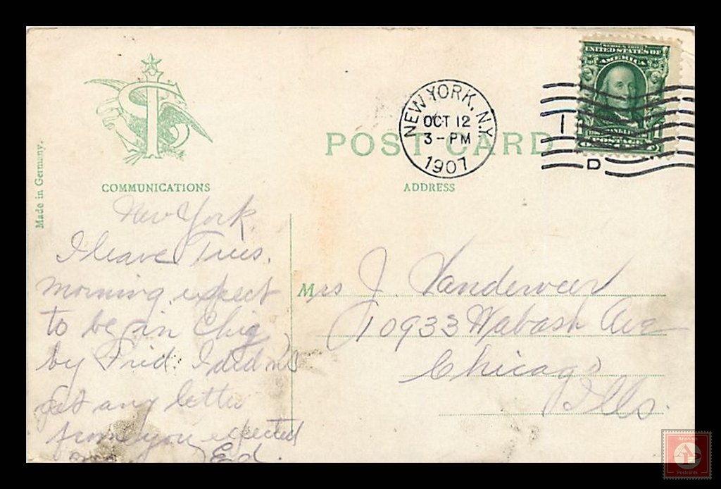 Some scans of postcards result in colored streaks which are a result of the error in scanning and not a fault of the postcard.