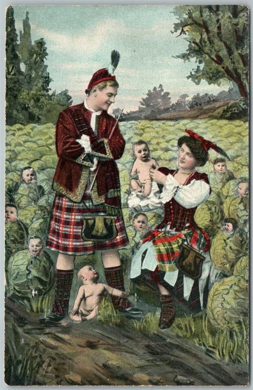 MULTIPLE BABIES CHOICE by SCOTTISH FAMILY ANTIQUE POSTCARD