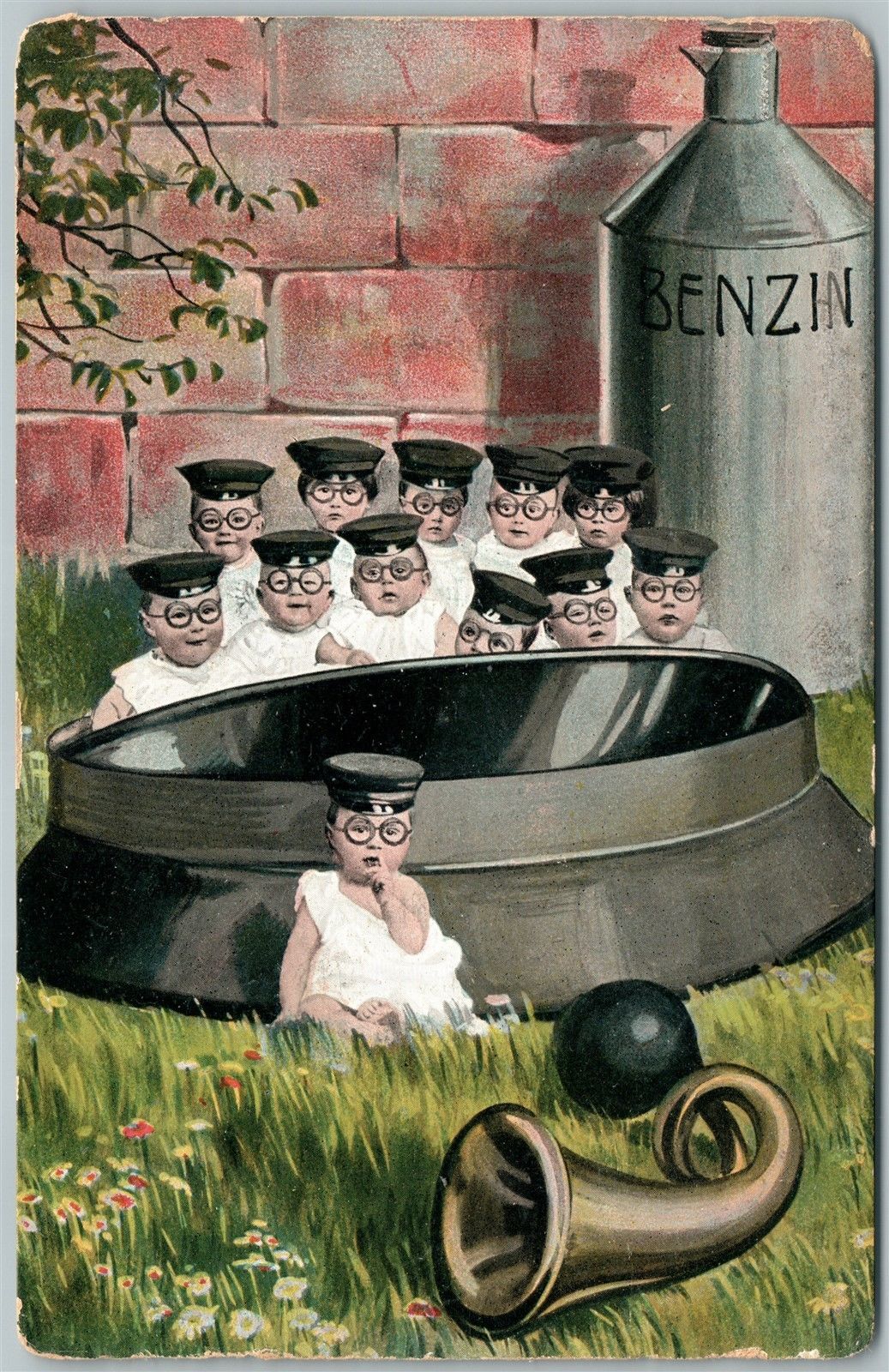 MULTIPLE BABIES in EYE GLASSES ANTIQUE POSTCARD