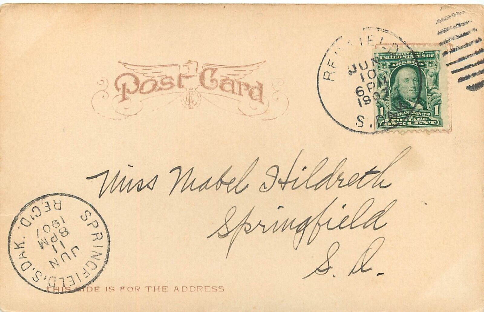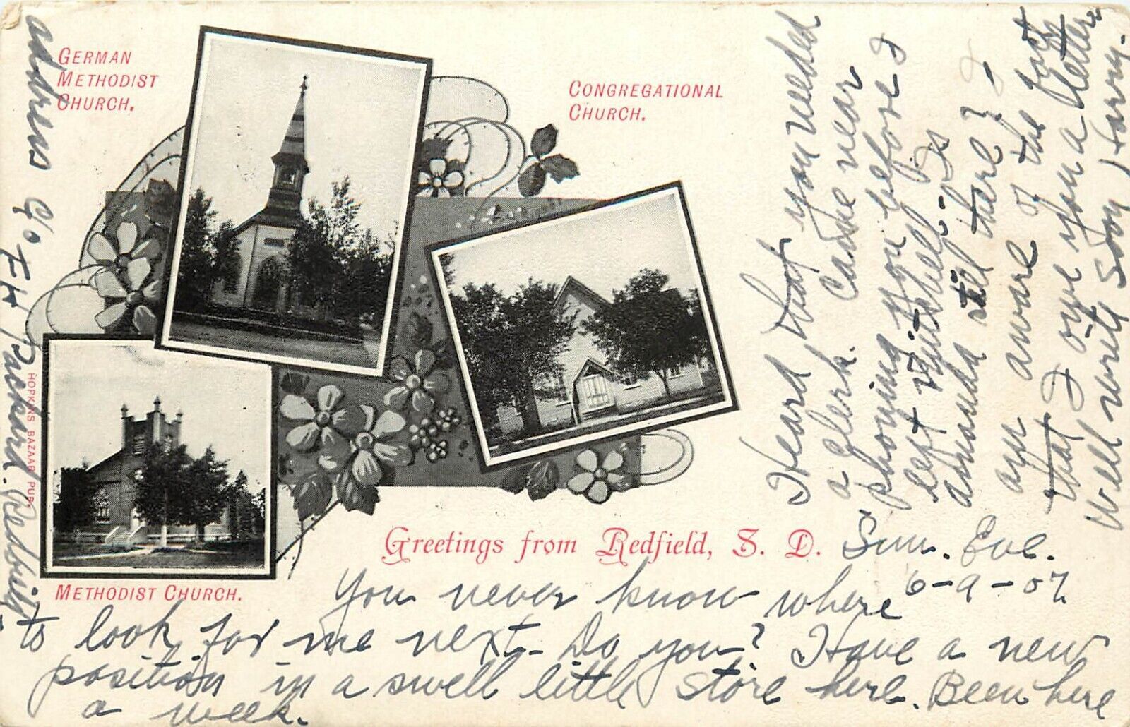 Multiview Postcard; Greetings from Redfield SD Spink County, Churches, Posted