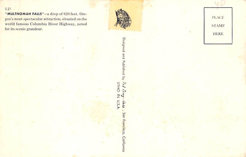 Multnomah Falls Columbia River Highway, Oregon OR Postcard - Unused Grade: 2 Size: R - Regular Size Postcard - approximately 3 1/2 inch x 5 1/2 inch (9 CM x 14 CM) Grading Scale: Grade 1 = Perfect corners Grade ... Read More