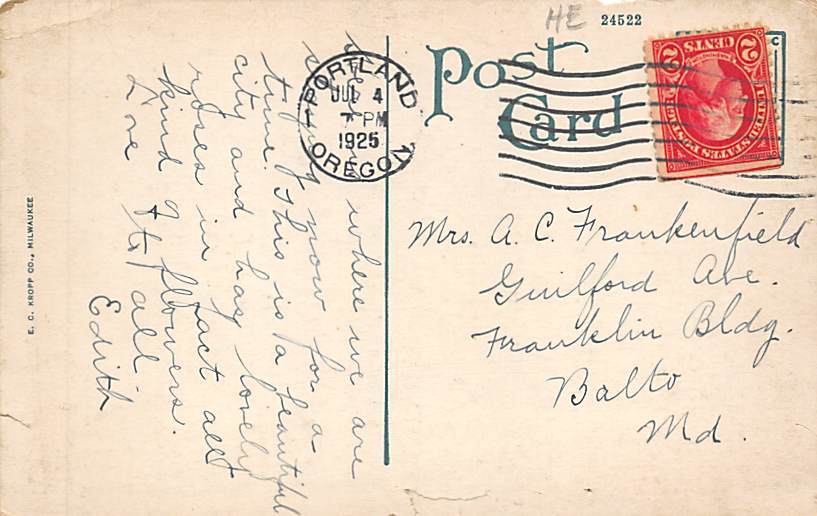 Multnomah Hotel Portland, Oregon OR Postcard Postal Date: 1925 Grade: 4 - paper wear, creases Size: Regular Size Postcard - approximately 3 1/2 inch x 5 1/2 inch (9 CM x 14 CM) Grading Scale: Grade 1 = Perfec ... Read More