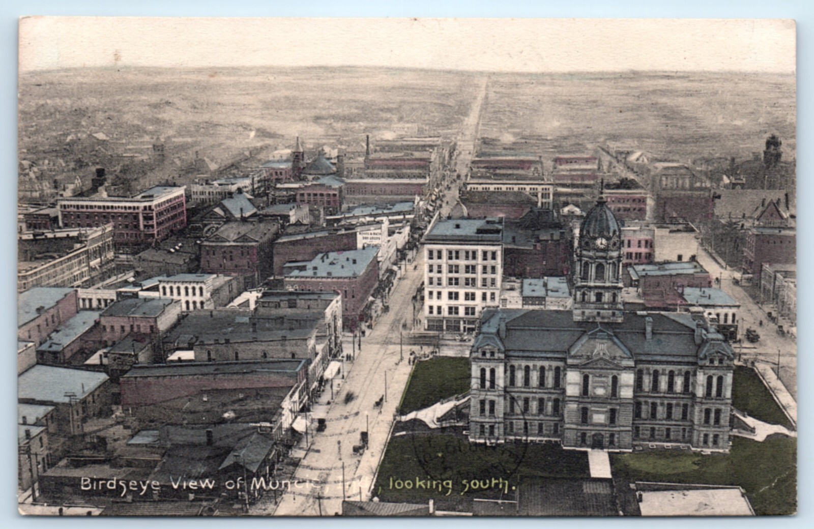Munice IN Birds Eye View Postcard Indiana