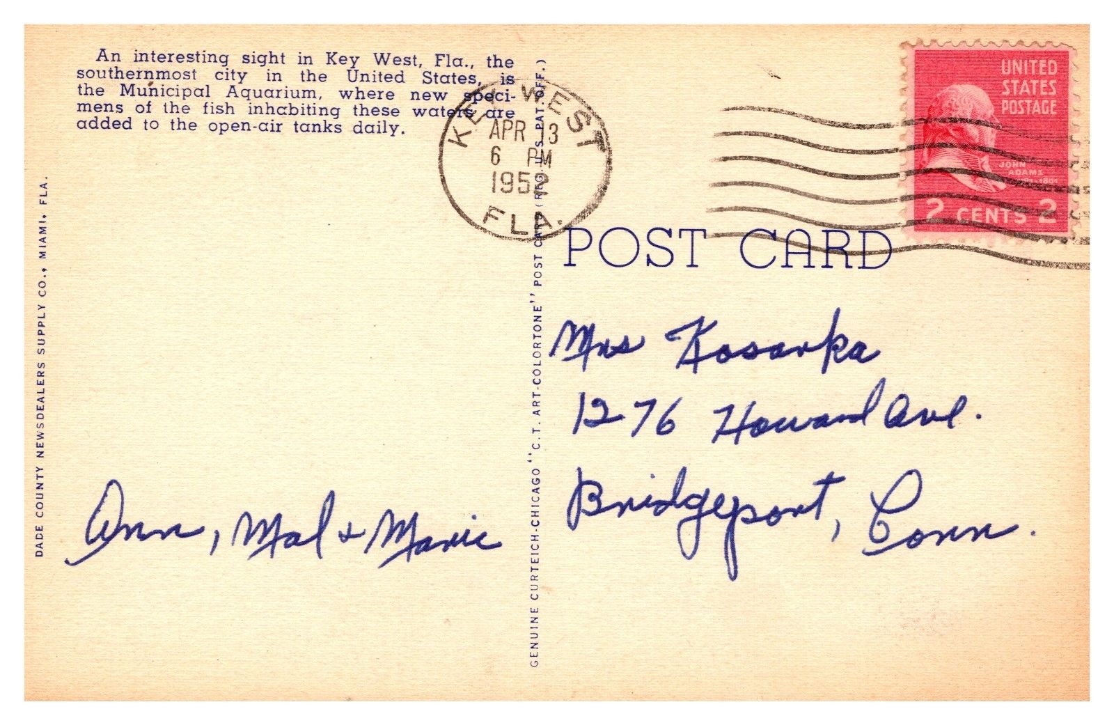 3.5 x 5.5 inches Posted 4/13/1952 Key West, FL, Red 2c John Adams stamp Shipping Methods: * U.S. Economy Shipping - FREE - Ships in rigid envelope via 1st class mail without tracking * U.S. Standard Shipping - ... Read More
