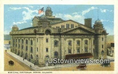 Municipal Aud. - Denver, Colorado CO Postcard Postal Date: Unused Grade: 2 Size: Regular Size Postcard - approximately 3 1/2 inch x 5 1/2 inch (9 CM x 14 CM) Grading Scale: Grade 1 = Perfect corners Grade 2 = ... Read More