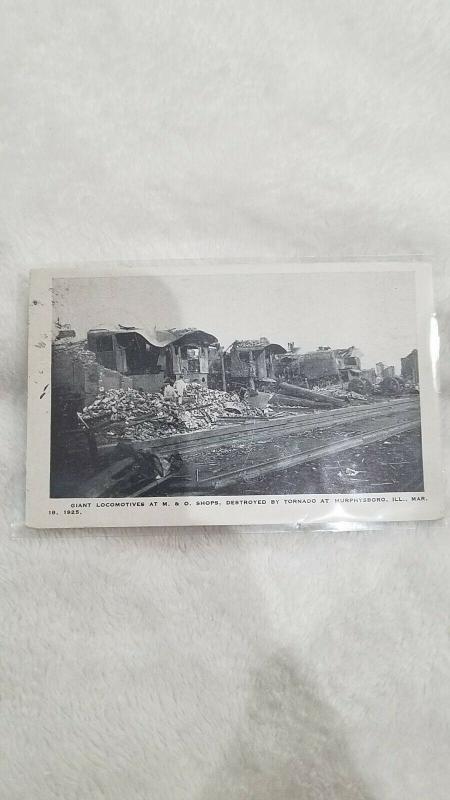 Murphysboro, IL Illinois 1925 Postcard Tornado Disaster, Locomotives Train