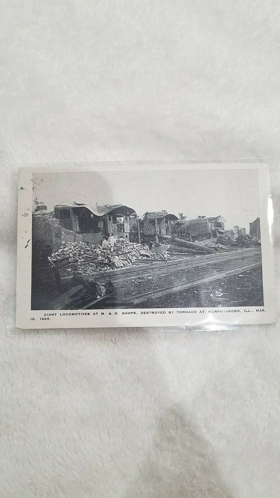 Posted card of the Murphysboro Tornado Disaster, March 18, 1925. Survivor writing to her sister. Stamp is missing