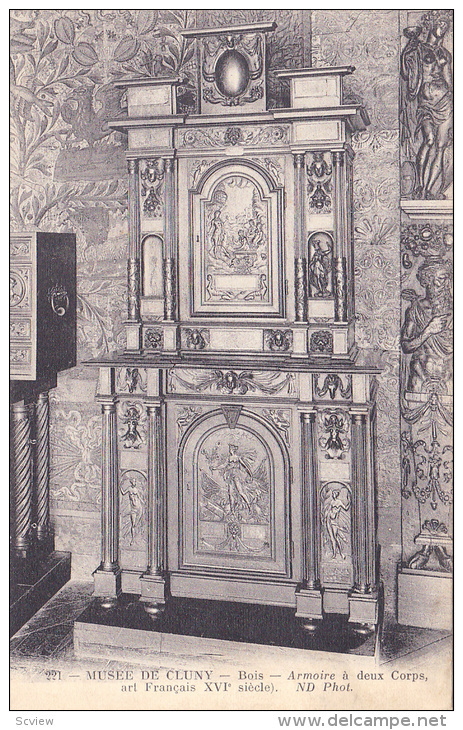 Musee De Cluny, Bois - Armoire A Deux Corps, Art Francais XVI Siecle, PARIS, France, 00-10s :: Antique (Vintage) Original Postcard, Size 3.5" by 5.5", Litho, EX.