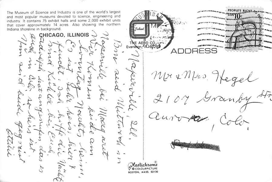 Museum of Science & Industry Grade: 3 Size: Continental Size - approximatly 4 Inch x 6 Inch (15 cm x 10.5) Grading Scale: Grade 1 = Perfect corners Grade 2 = Very Minimal corner wear, no creases Grade 3 = Some ... Read More