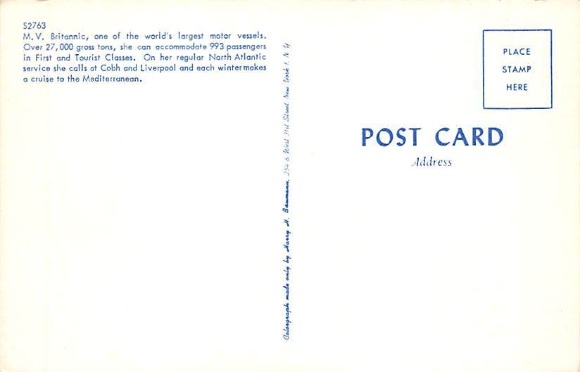 MV Britannic White Star Line Unused