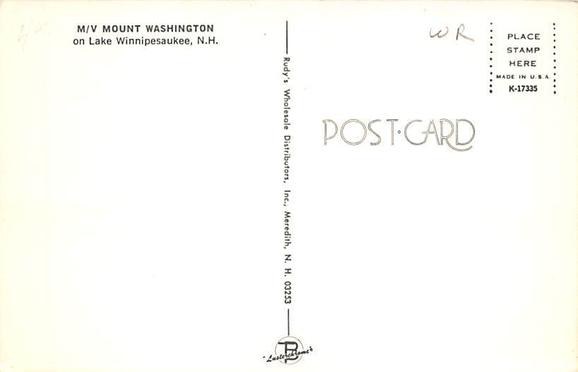 MV Mount Washington Ferry Boat Ship Postcard , Grade: 1 Size: Regular Size Postcard - approximately 3 1/2 inch x 5 1/2 inch (9 CM x 14 CM) Grading Scale: Grade 1 = Perfect corners Grade 2 = Very Minimal corner ... Read More