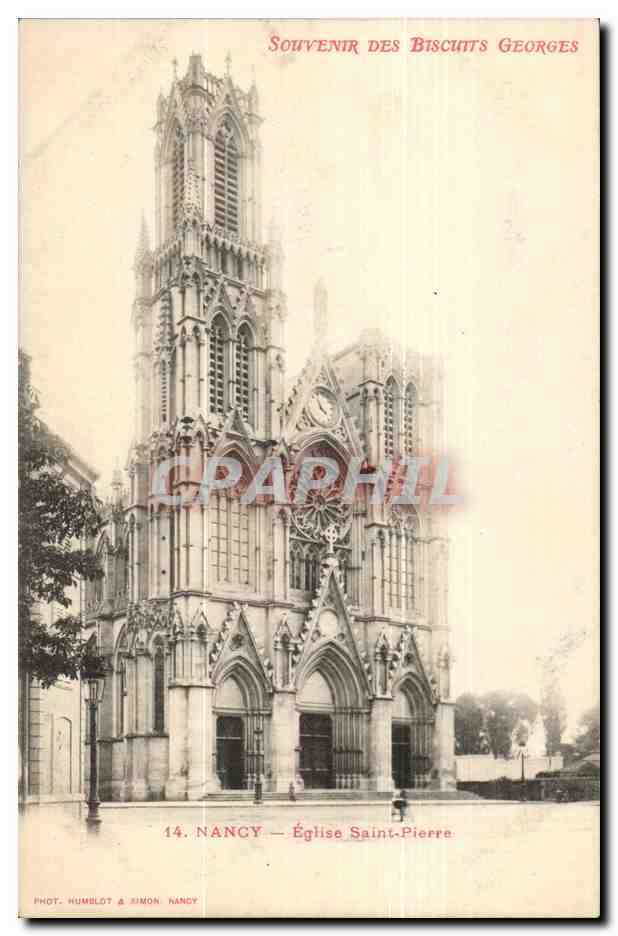 Nancy Postcard Ancient Church St. Pierre + advertisement Georges Biscuits Rem...