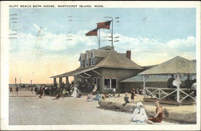 Nantucket MA Cliff Beach Bath House c1920 Postcard