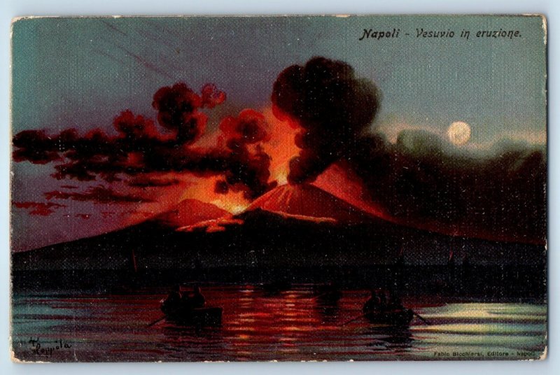 Naples Campania Italy Postcard Moonlight and Vesuvio Eruption Scene c1910