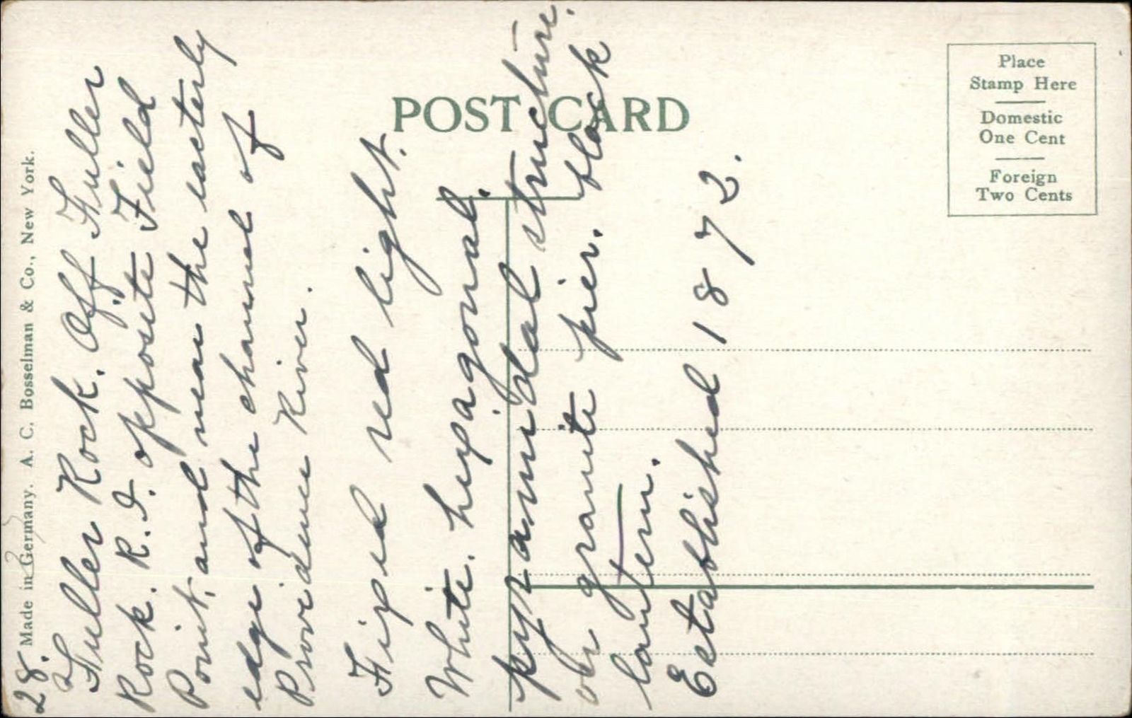 Narragansett Bay RI Fuller's Ledge Lighthouse c1910 Postcard