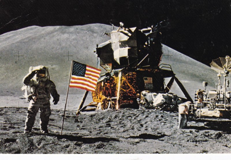 NASA Irwin Saluting Beside Flag On Moon 1987