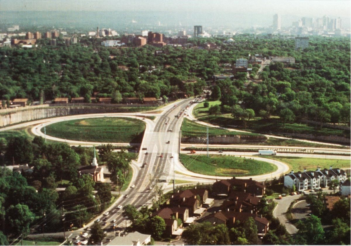 A postcard of a cloverleaf interchange on Interstate 440 in Nashville, Tennessee.
