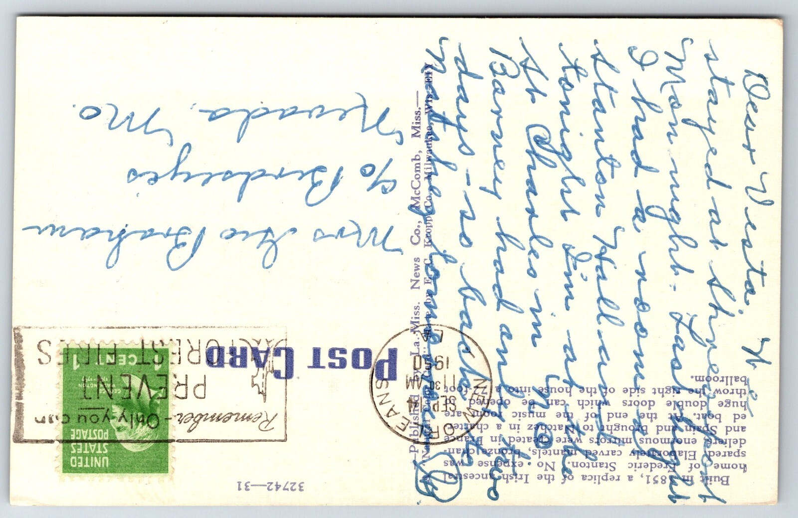 Natchez Mississippi~Stanton Hall Front View~PM 1950~EC Kropp Vtg Linen Postcard