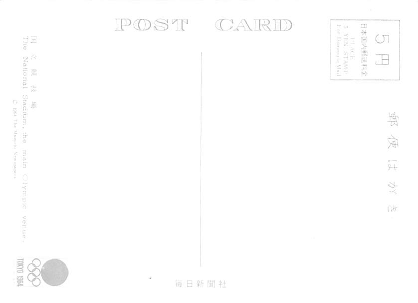 National Stadium - Tokyo Grade: 1 Category: Continental Size Postcard, Approx 4 in x 6 in (10 cm x 15.25 cm) Product Size: Continental size: 4X6 inches (10.5 cm x 15 cm) Grading Scale: Grade 1 = Perfect corner ... Read More