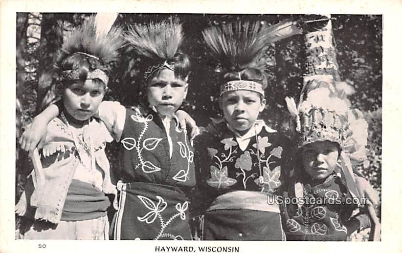 Native Children in Costume - Hayward, Wisconsin Postcard - Unused