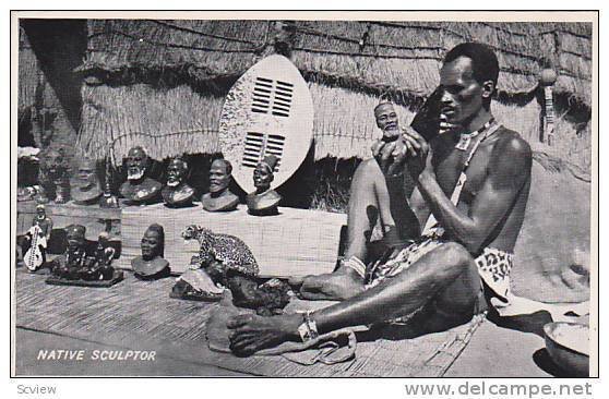 Native Sculptor, 1940-1960s :: Antique (Vintage) Original Postcard, Standard Size, 3.5" by 5.5", Chrome, EX.