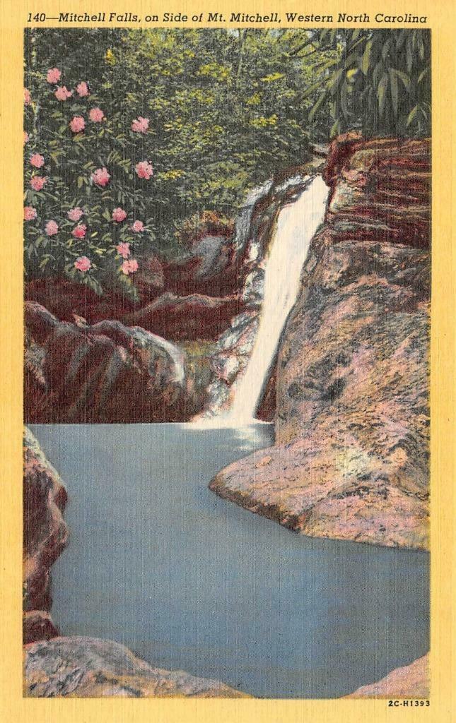 Nc, north carolina mitchell falls~water falls yancey county c1940's postcard