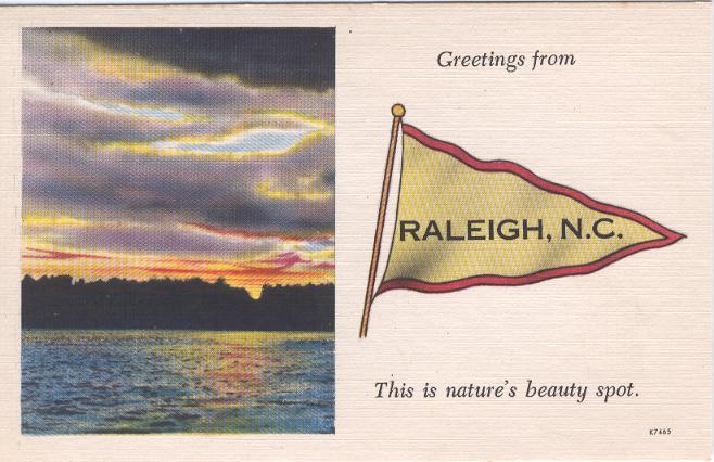 NC RALEIGH PENNANT GREETINGS linen postcard