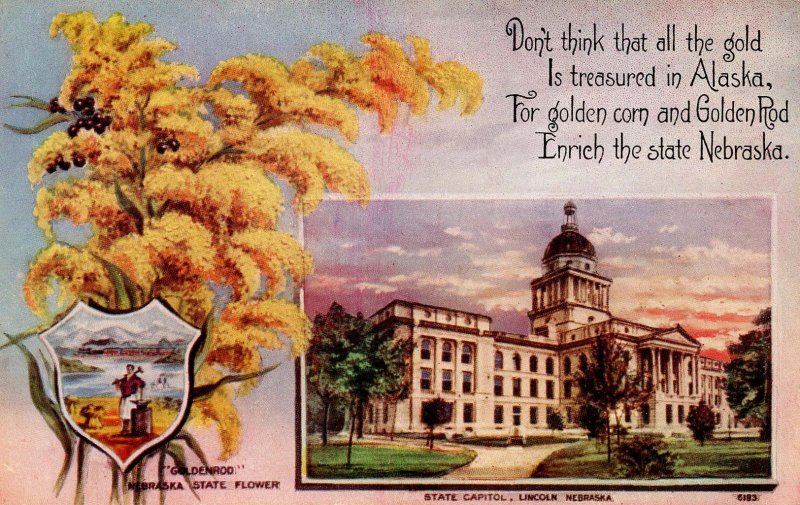 NE - State Flower & Capitol. Goldenrod & Lincoln