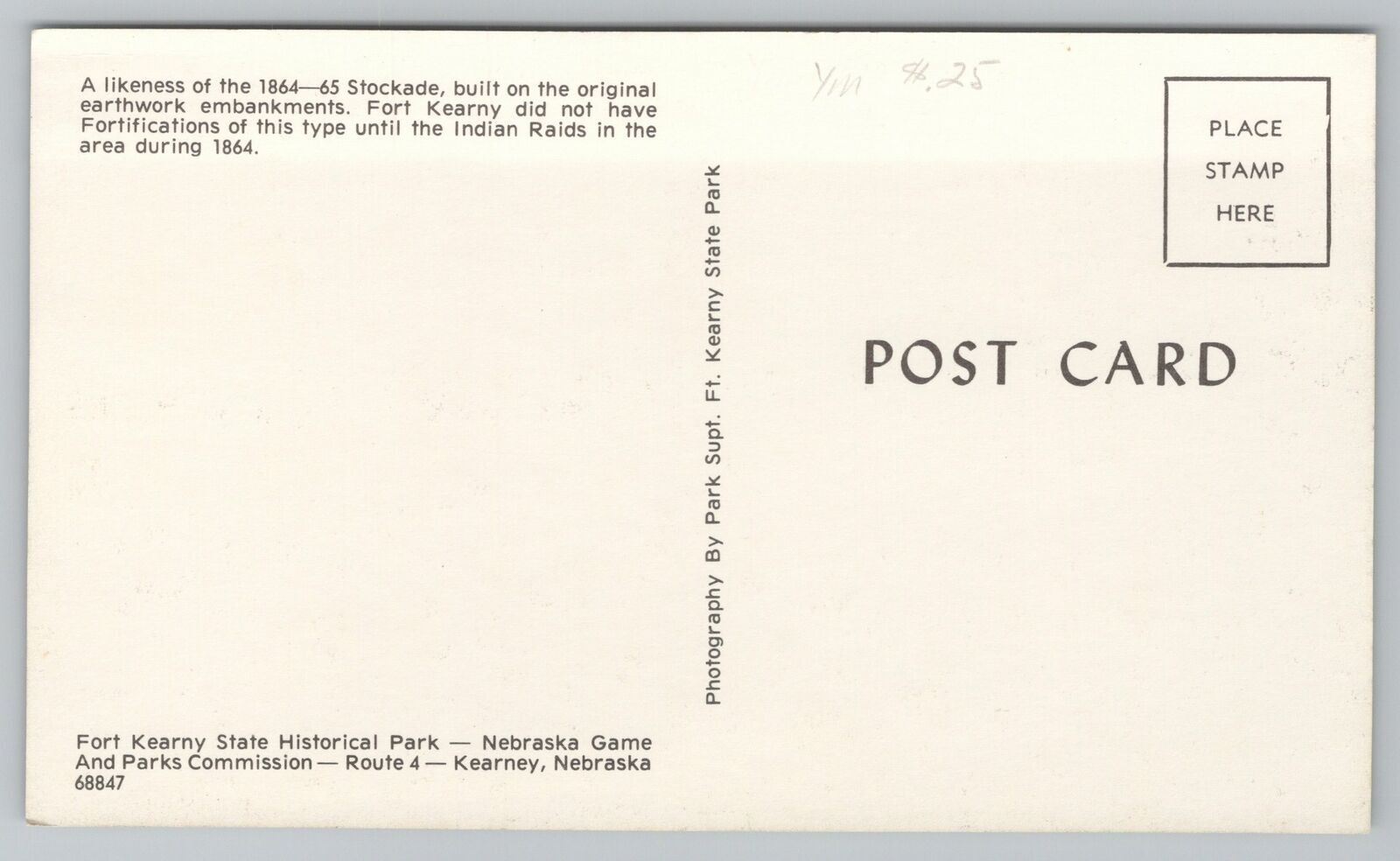 Nebraska~Stockade At Fort Kearney~Vintage Postcard
