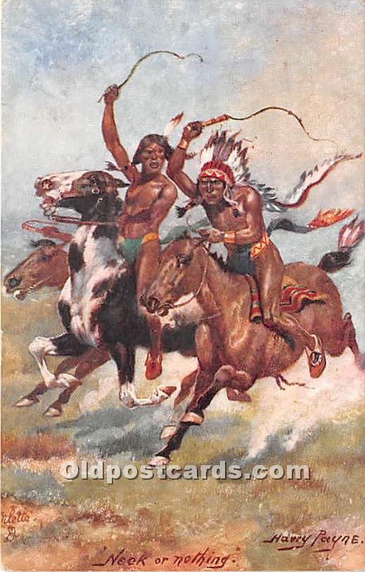 Neck or Nothing by Harry Payne Indian Postcard