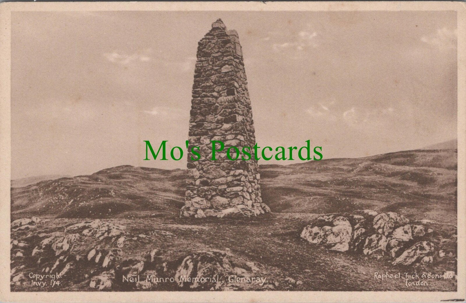 This is a postcard of the Neil Munro Memorial, GlenarayPublisher: Raphael Tuck & SonsPostcard size: Standard. If a postcard has any obvious defects they will be mentioned within this product description. Please use our image magnifier to make your own assessment on the condition.Postcard defect(s) : All of our postcards are posted to you inside a plastic sleeve and a board backed envelope which will be marked 'Please do not bend'. The 'Mo's Postcards' watermark does not appear on the actual postcard'.Mo's Ref No: SW8800 for Neil Munro Memorial, Glenaray