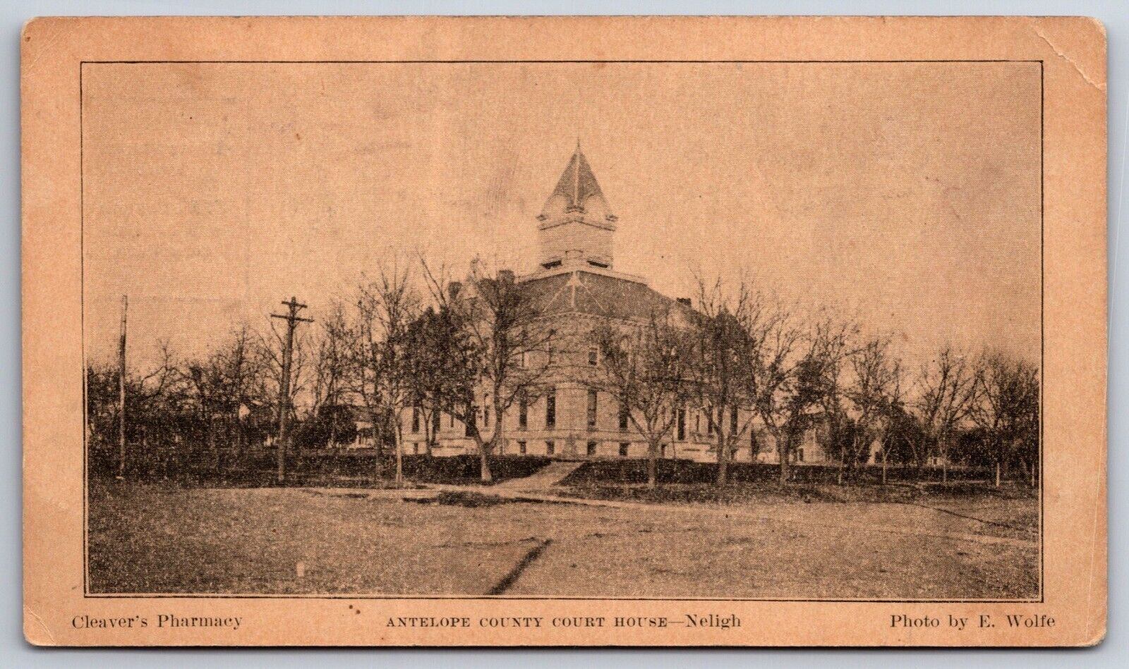 Neligh Nebraska~Antelope County Courthouse~Homes~c1905 B&W E Wolfe Postcard