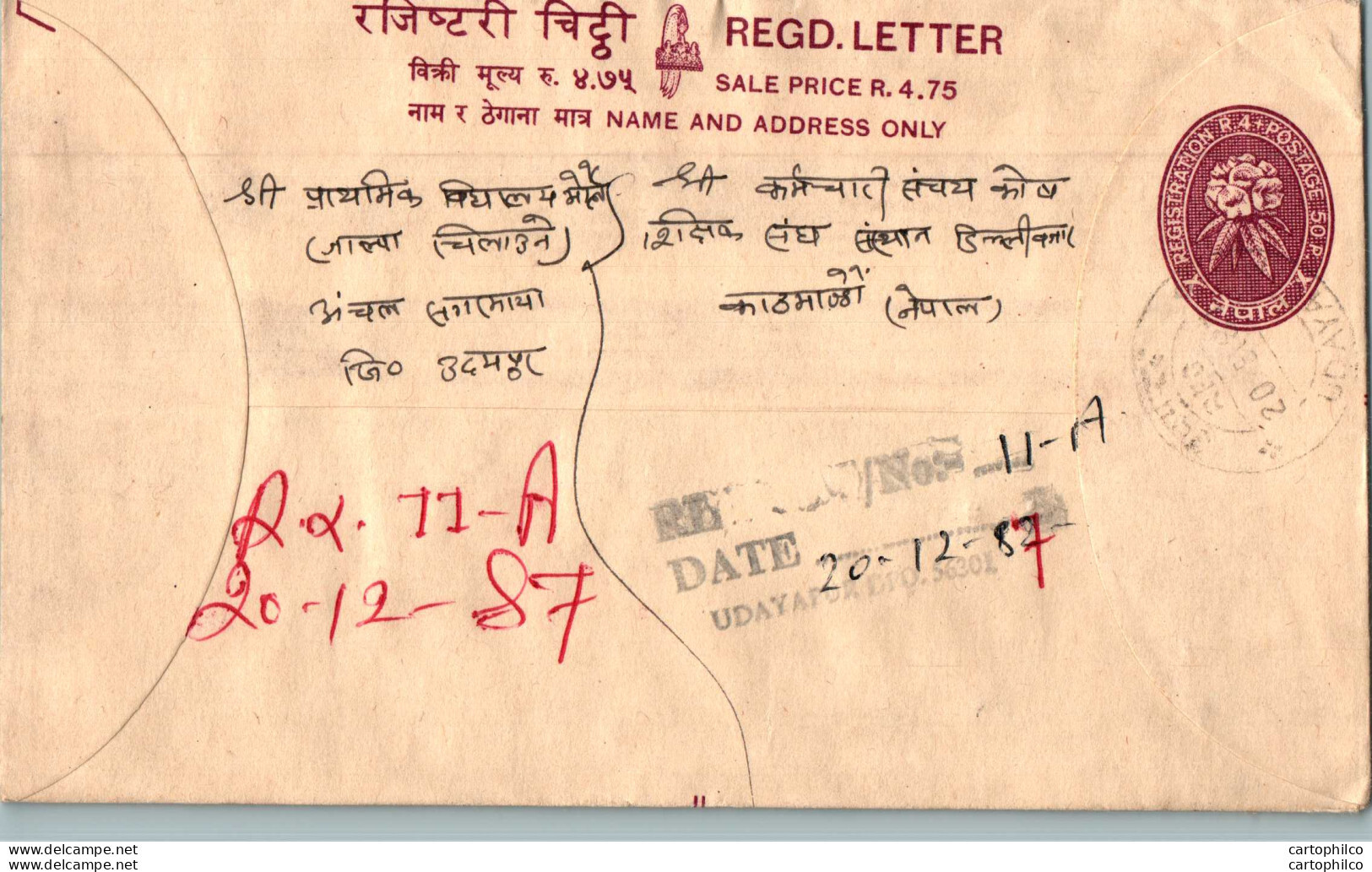 Nepal Postal Stationery Flowers 50p Udayapur