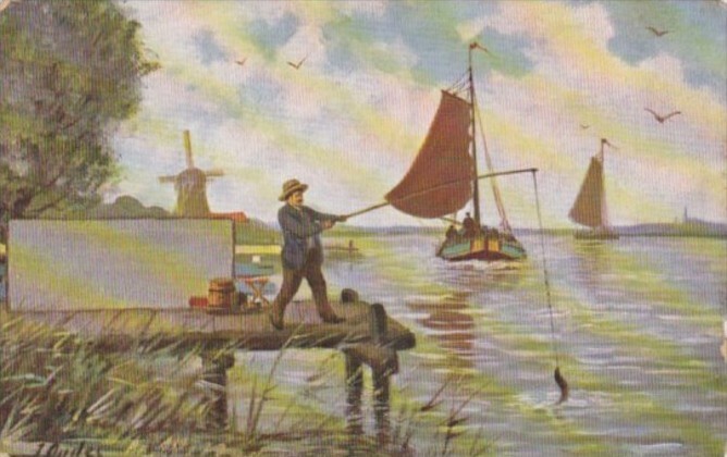Netherlands Man Fishing Off Pier